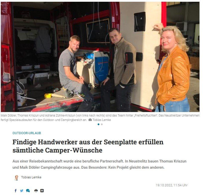"Vom Surfer-Bulli bis hin zum Expeditionsfahrzeug – Ausbau-Experte Thomas Kriszun lässt mit seiner Firma „Freiheitsfluchten“ den Traum vom individuell angefertigten Camper wahr werden. In Workshops können Interessierte zudem ihr Wunschfahrzeug selbst planen, gestalten und ausbauen."